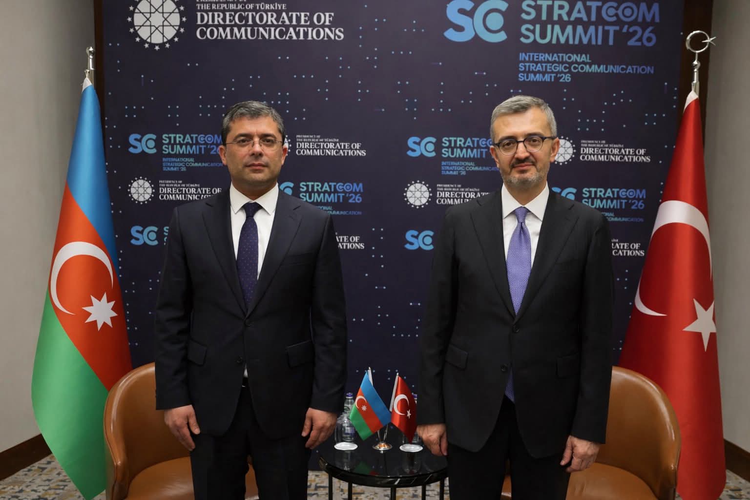 "Stratcom Summit 26” çərçivəsində Azərbaycan Respublikasının Medianın İnkişafı Agentliyinin İcraçı direktoru Əhməd İsmayılov ilə Türkiyə Prezidenti Administrasiyasının İctimaiyyətlə Əlaqələr Departamentinin rəhbəri Burhanettin Duran arasında ikitərəfli görüş keçirilib.
